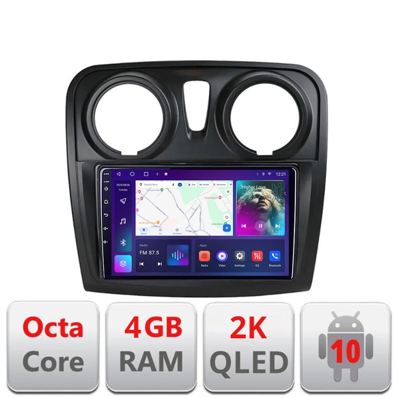 Navigatie Dacia Sandero Logan 2012-2020 C-sandero Android Octa Core Ecran 2K QLED GPS 4G 4+32GB 360 kit-sandero+EDT-E409-2K