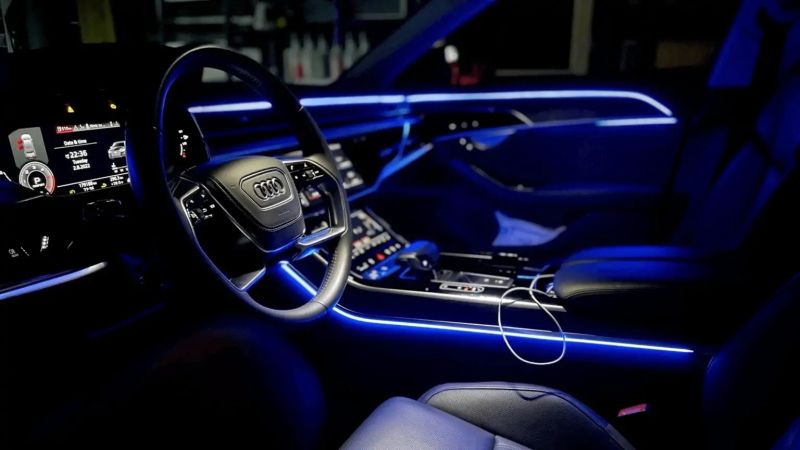 - Pachetul conține: Benzi LED pentru bord și uși, module pentru mânerele ușilor, buzunare, sub scaune.