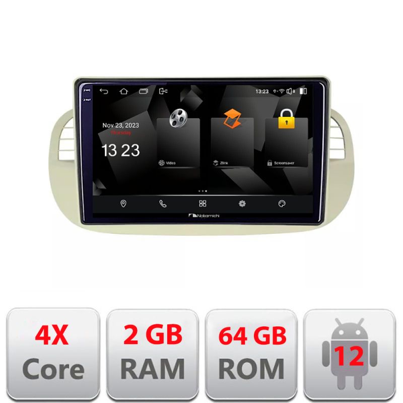 Navigatie Fiat 500 intre anii 2007-2015 Android Ecran 720P Quad Core 2+64 carplay android auto