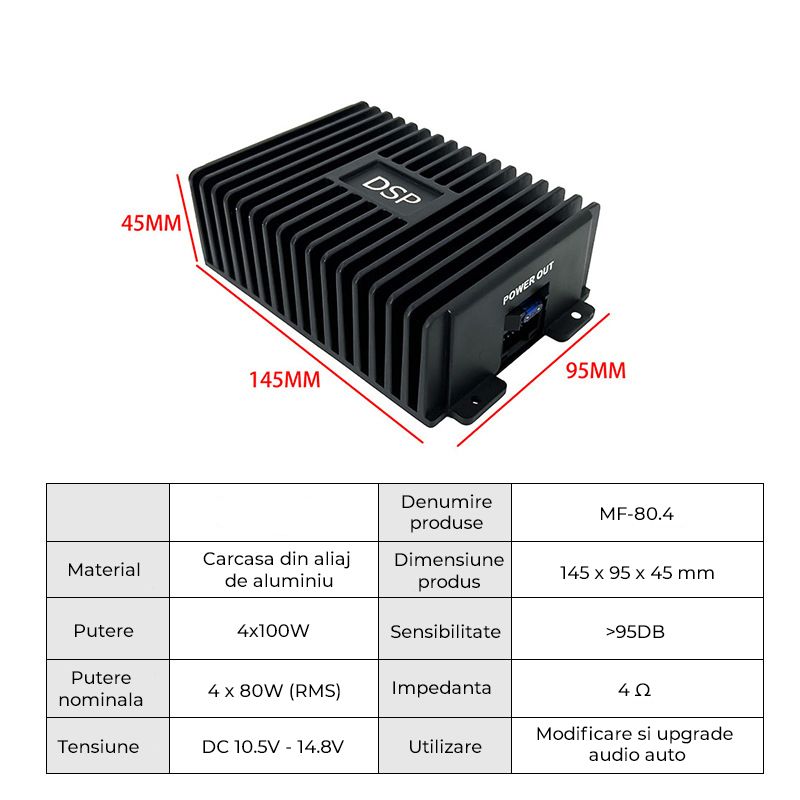 Amplificator DSP auto, procesor audio cu patru canale, Android, MF-80.4