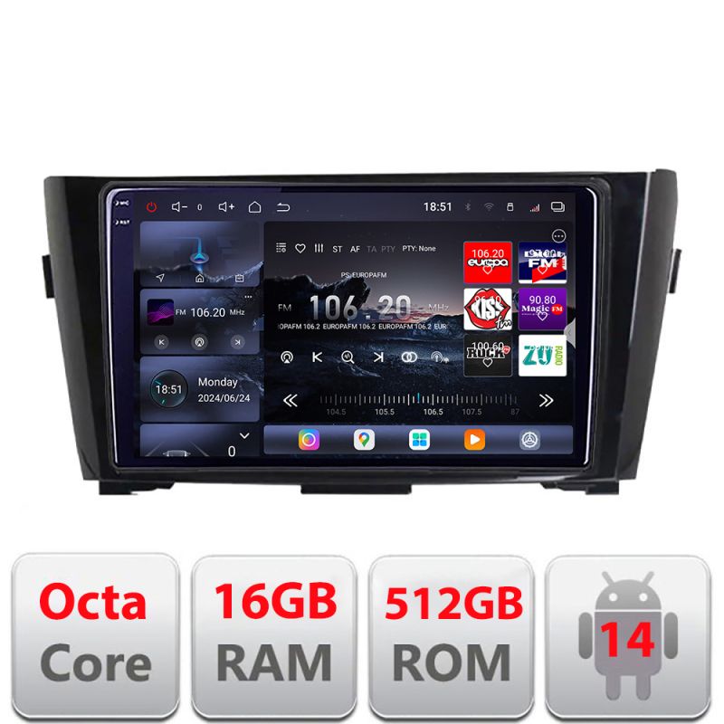 Navigatie Nissan Qashqai X-Trail 2013-2018 Edotec Kit-353 8 core QLED 2K 12+256GB 360 Android Waze USB Navigatie Internet Youtube Radio