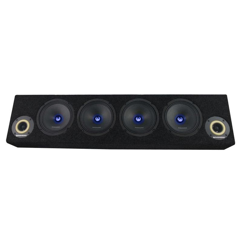 Transformă orice spațiu cu sunetul uimitor și iluminarea vibrantă a cutiei de gamă completă Phoenix Gold RGB! Cu lumini RGB personalizabile pe fiecare dintre cele patru șoferi puternice de 6,5 ″ de la mijloc, această cutie audio unică aduce un sunet dinamic și un fler vizual oriunde îl luați, fie în mașină, atelier, pe o barcă sau chiar în campingul dvs.