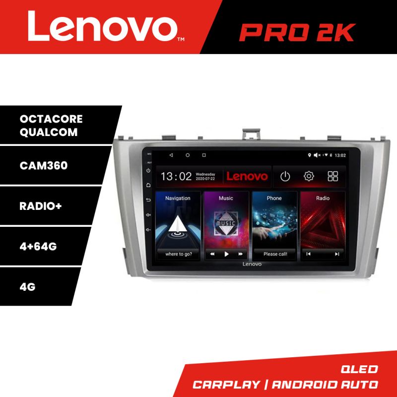 Navigatie Toyota Avensis 2009-2015 Lenovo Kit-TY12 8 core QLED 2K 4+64 360 Android Waze USB Navigatie Internet Youtube Radio