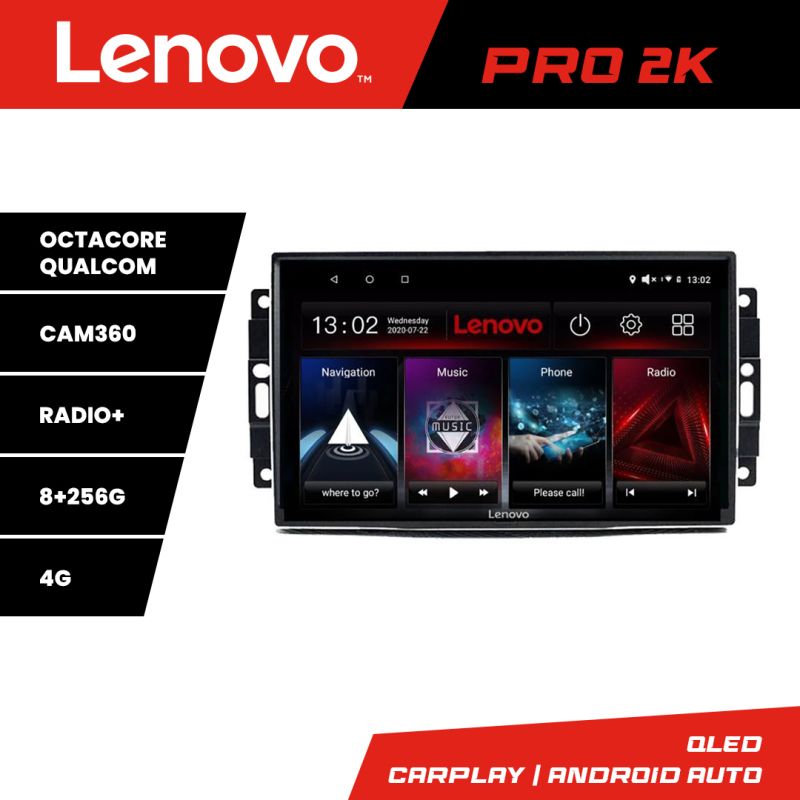 Navigatie Chrysler Jeep Lenovo Kit-202 8 core QLED 2K 8+256 360 Android Waze USB Navigatie Internet Youtube Radio v3