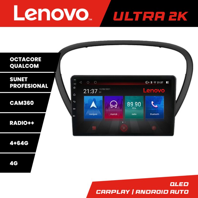 Navigatie Peugeot 607 Android radio gps internet 8 core QLED Qualcomm 4+64 360 Lenovo