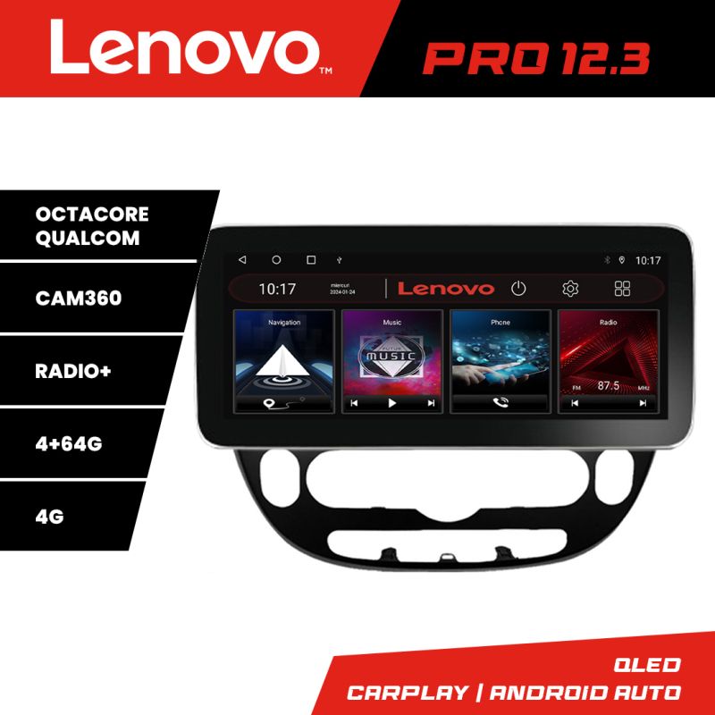 Navigatie Kia Soul 2014-2019 Lenovo PRO 4+64 12.3 inch qled android 4G DSP gps internet Kit-soul-2014