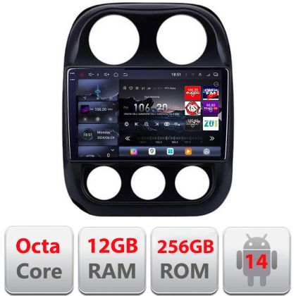 Navigatie Jeep Compass 2010-2016 Edotec Kit-2500 8 core QLED 2K 12+256GB 360 Android Waze USB Navigatie Internet Youtube Radio