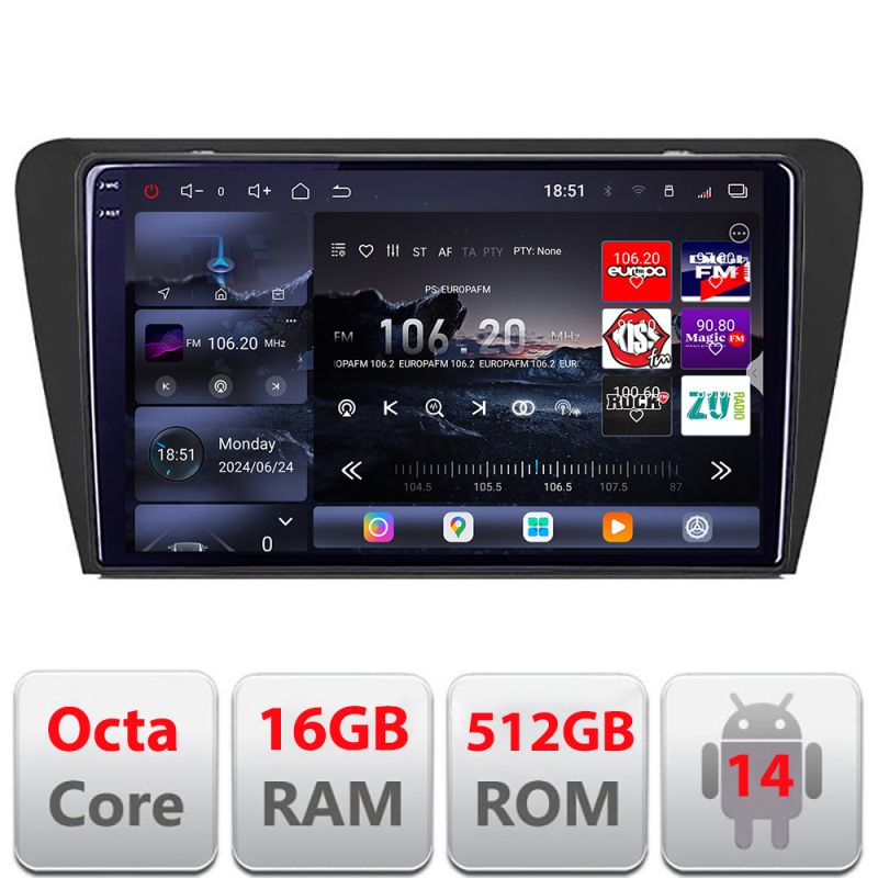 Navigatie Skoda Octavia 3 2013-2020 Edotec Kit-279 8 core QLED 2K 12+256GB 360 Android Waze USB Navigatie Internet Youtube Radio