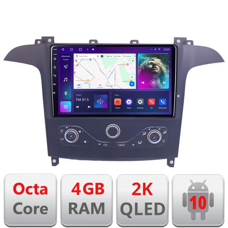 Navigatie Ford S-max 2006-2014 QLED 2K Octa core 4+32 DSP 360 Optic FHD internet gps radio carplay android auto KIT-smax-navi+EDT-E409-2K