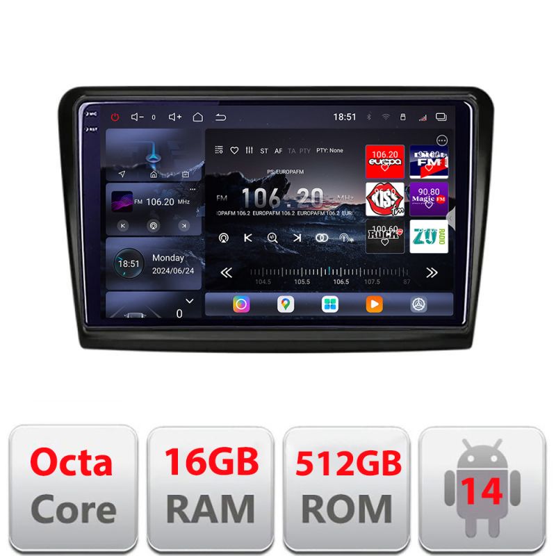 Navigatie Skoda Superb 2 2009-2015 Edotec Kit-SUPERB2 8 core QLED 2K 12+256GB 360 Android Waze USB Navigatie Internet Youtube Radio