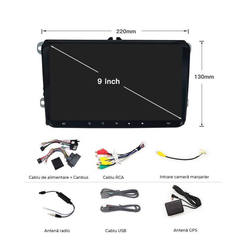 | 2. Ce conține pachetul livrat? | Kit‑ul „Kit‑049 4+64 GB” include: unitatea principală Android cu procesor Quad‑Core și 4 GB RAM/64 GB stocare, cablaj ISO pentru alimentare şi difuzoare, adaptor antenă GPS, cablu USB pentru date şi încărcare, rama de montaj dedicată mașinii dvs, manual de instalare şi card de garanţie. (Kit‑ul este „all‑in‑one”, gata de montaj.) |